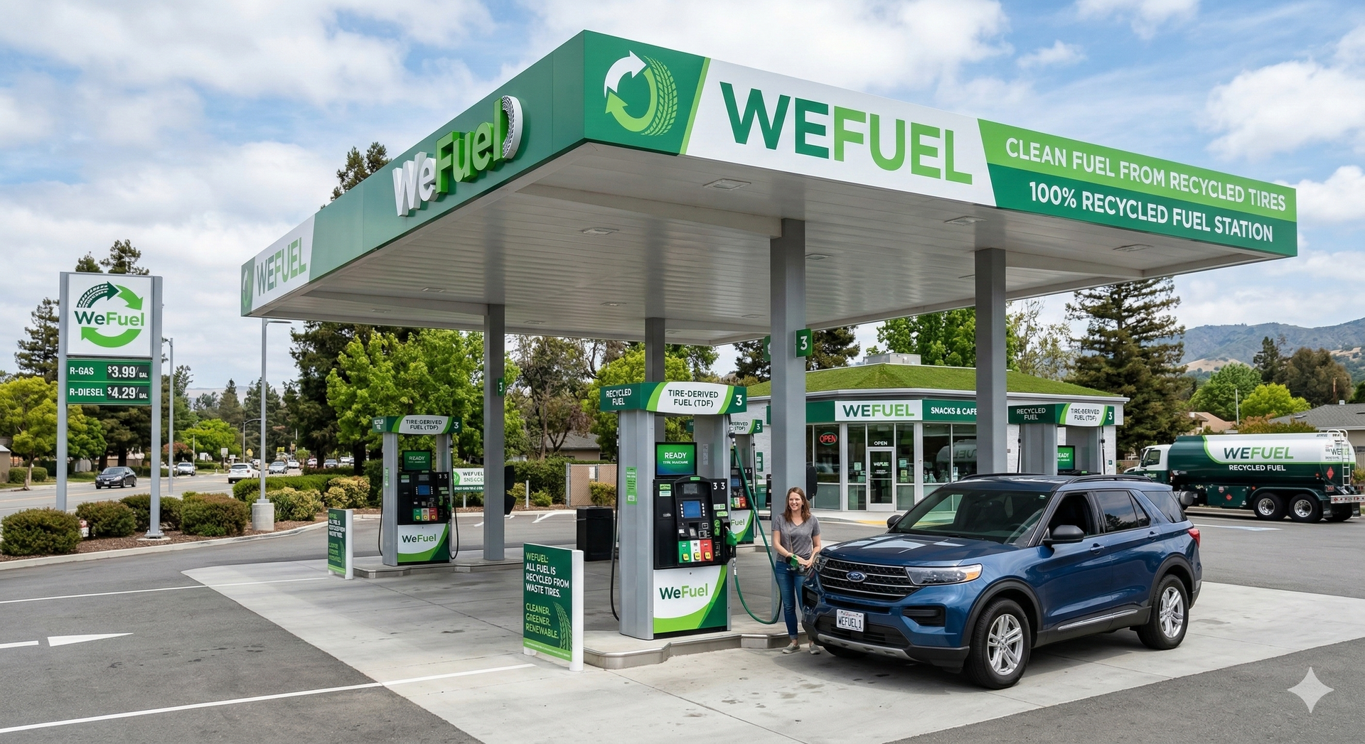 WEFuel Station Network — A branded network of recycled fuel stations designed not only to power vehicles, but to champion the health of the drivers who use them creating a retail experience that puts people and planet first.